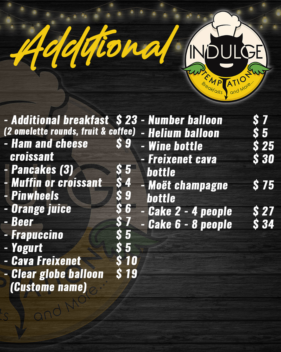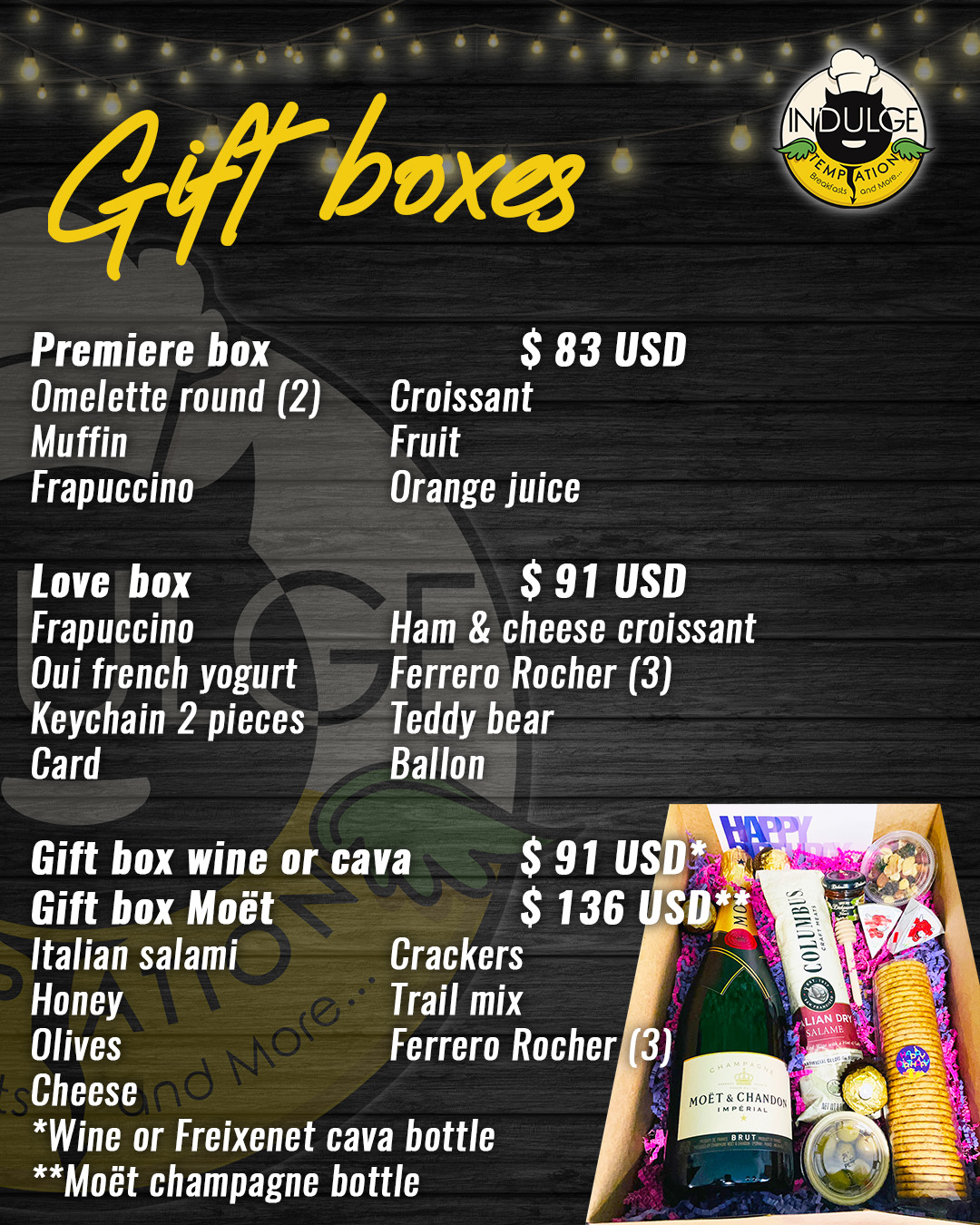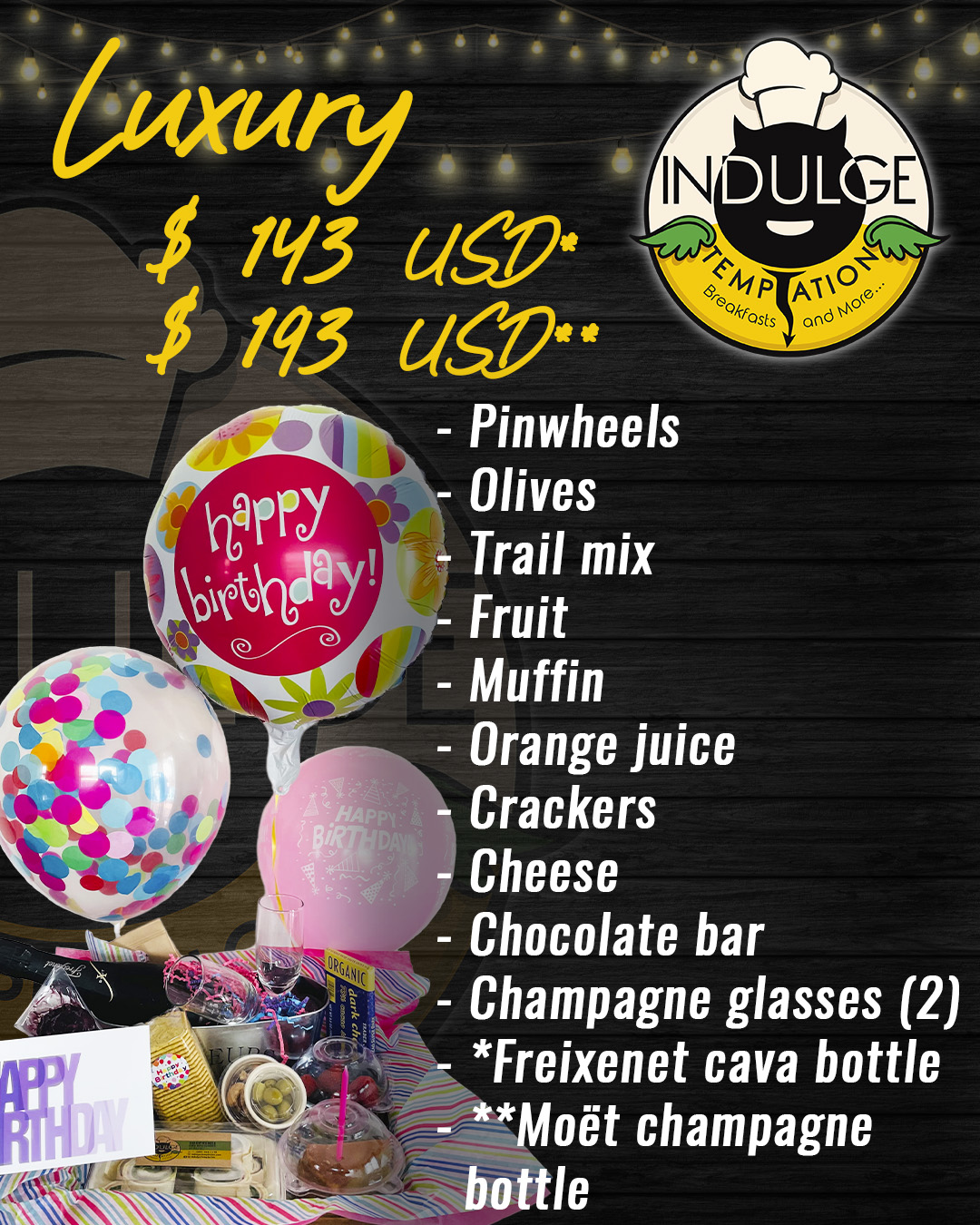 SURPRISE BREAKFASTS MENUREMEMBER ORDER YOUR SURPRISE BREAKFAST WITHIN 48 HOURS.MAKE YOUR FAMILY AND FRIENDS HAPPY! THE PRICES OF THE SURPRISE BREAKFASTS ARE IN DOLLARS (USD).ALL MENUS INCLUDE BALLOONS, CARD AND WOOD TRAY. ORDER YOUR SURPRISE BREAKFAST HERE Facebook Instagram Whatsapp